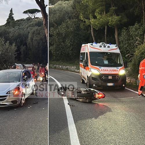 Per cause ancora in corso di accertamento, uno scooter guidato da un giovane si è scontrato con un'automobile Opel, condotta da un uomo che procedeva in direzione Positano, mentre il ragazzo viaggiava in direzione opposta.