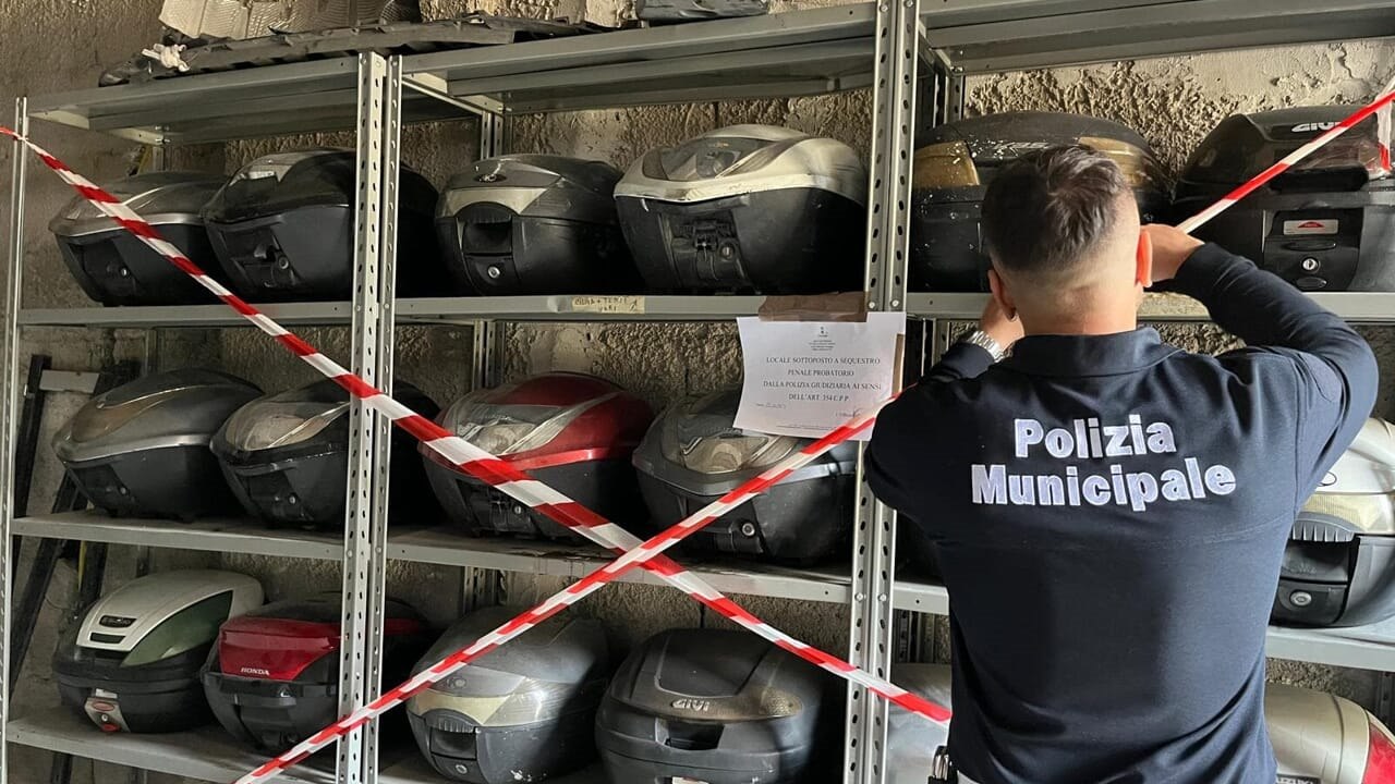 Nel corso della stessa operazione, in un locale adiacente e nelle aree di pertinenza del complesso edilizio pubblico, gli agenti hanno rinvenuto centinaia di componenti di veicoli, tra cui bauletti di motocicli, paraurti, fari ed altri accessori automobilistici, di cui non è stato possibile accertare la provenienza.