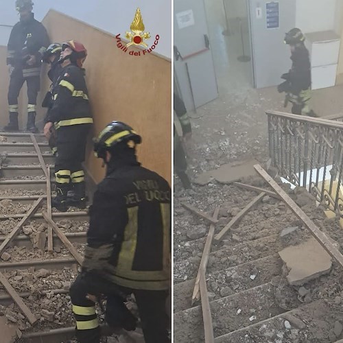 È stata messa in sicurezza l'area e proceduto con l'evacuazione ordinata degli studenti e del personale scolastico, utilizzando una scala secondaria per evitare ulteriori rischi. Fortunatamente, non si registrano feriti gravi: alcuni alunni sono stati soccorsi dal personale sanitario del 118 per lievi difficoltà respiratorie dovute all'inalazione delle polveri sollevate dal crollo.