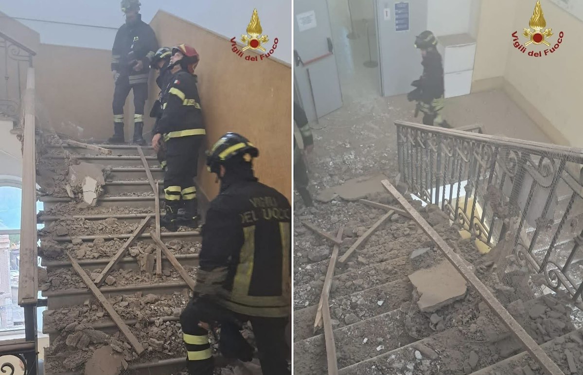 Il cedimento ha interessato la zona centrale del tetto, provocando la caduta di calcinacci lungo tutte le rampe delle scale che collegano i diversi piani dell'edificio. Immediato l'intervento dei Vigili del Fuoco, allertati dalla sala operativa del Comando di Roma, che ha inviato sul posto le squadre 12/A e 3/A, supportate da un'autoscala e dal funzionario di guardia.