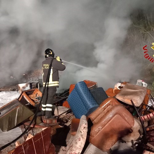 Le fiamme, sviluppatesi per cause ancora in corso di accertamento, hanno rapidamente coinvolto accumuli di materiali vari, tra cui mobili dismessi, rifiuti e immondizia di ogni genere, generando una densa colonna di fumo visibile anche a distanza.