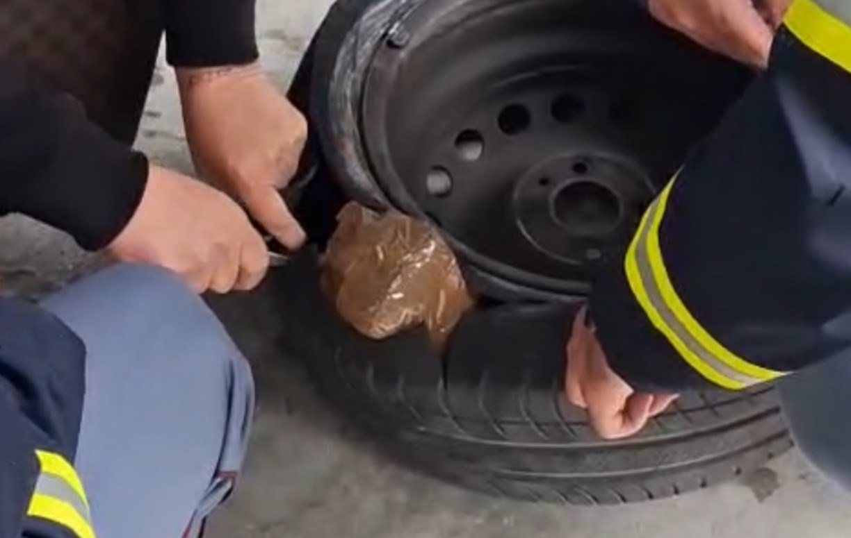 Durante un controllo stradale, gli agenti hanno notato anomalie sulla ruota di scorta dell'auto e, approfondendo le verifiche, hanno scoperto 56 panetti di hashish, per un totale di oltre 5,6 chilogrammi.