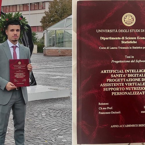 Alla soddisfazione personale di Luigi si uniscono con orgoglio e affetto gli auguri della famiglia, che ne ha seguito con dedizione il percorso di studi, e quelli della redazione di Cetara News e de Il Vescovado, che si congratulano con lui per il brillante risultato raggiunto e per l'impegno dimostrato in un ambito tanto innovativo quanto promettente.