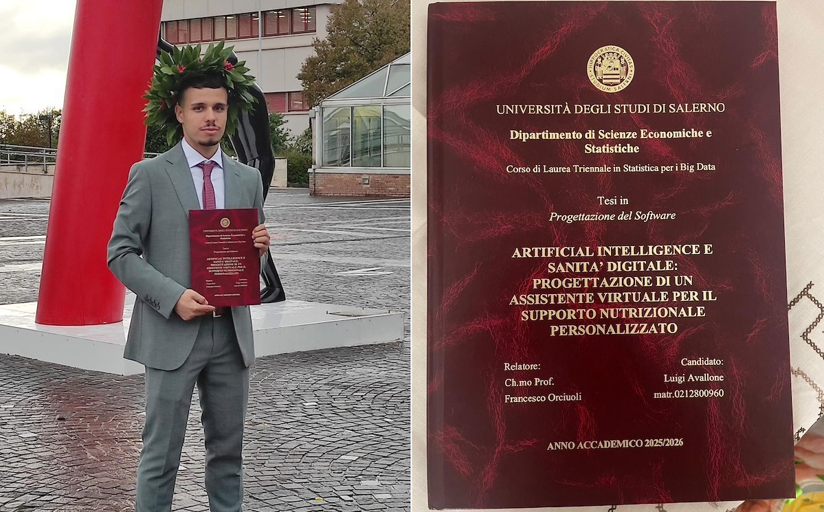 Luigi ha discusso una tesi in Progettazione del Software dal titolo "Artificial Intelligence e Sanità Digitale: progettazione di un assistente virtuale per il supporto nutrizionale personalizzato", relatore il Ch.mo Prof. Francesco Orciuoli.