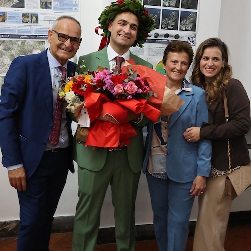 Si è laureato oggi, giovedì 23 ottobre, in Architettura presso l’Università degli Studi di Napoli Federico II, il giovane maiorese Gabriele Abbate, discutendo una tesi dal titolo "Il Fiordo di Furore. Fragilità del territorio e monitoraggio del dissesto costiero tramite le tecniche di rilievo architettonico e ambientale".