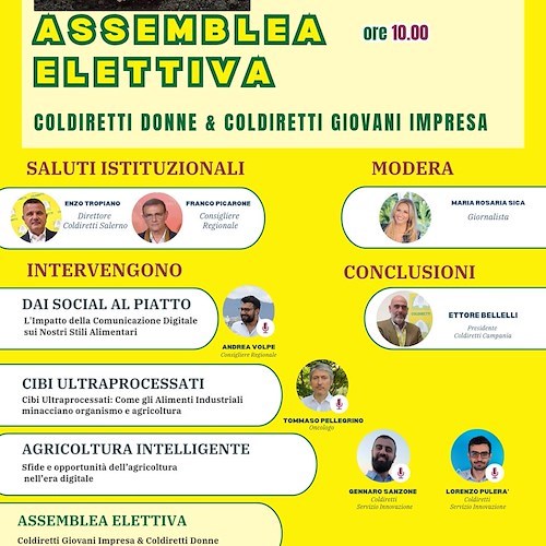 Tu sei qui: Economia e TurismoColdiretti Salerno: 3 ottobre rinnovo delle cariche i nuovi membri per “Coldiretti Giovani Impresa” e “Coldiretti Donne”