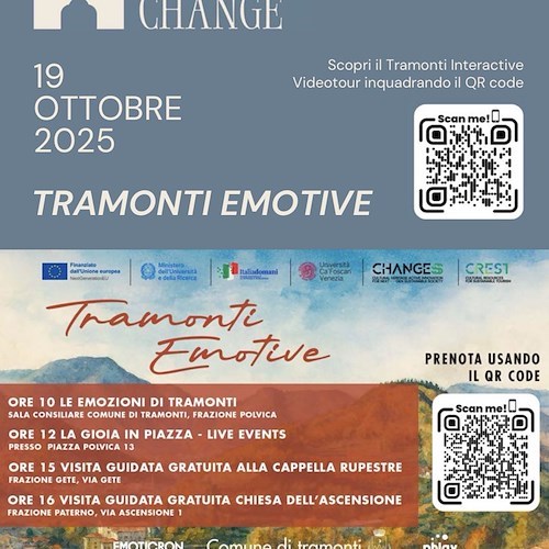 L'iniziativa, aperta a tutti e a partecipazione gratuita, invita residenti, famiglie e visitatori a esplorare Tramonti in modo nuovo, grazie a un percorso interattivo accessibile da smartphone e tramite display dedicati, per conoscere luoghi, storie e tradizioni in sintonia con il proprio stato d'animo.