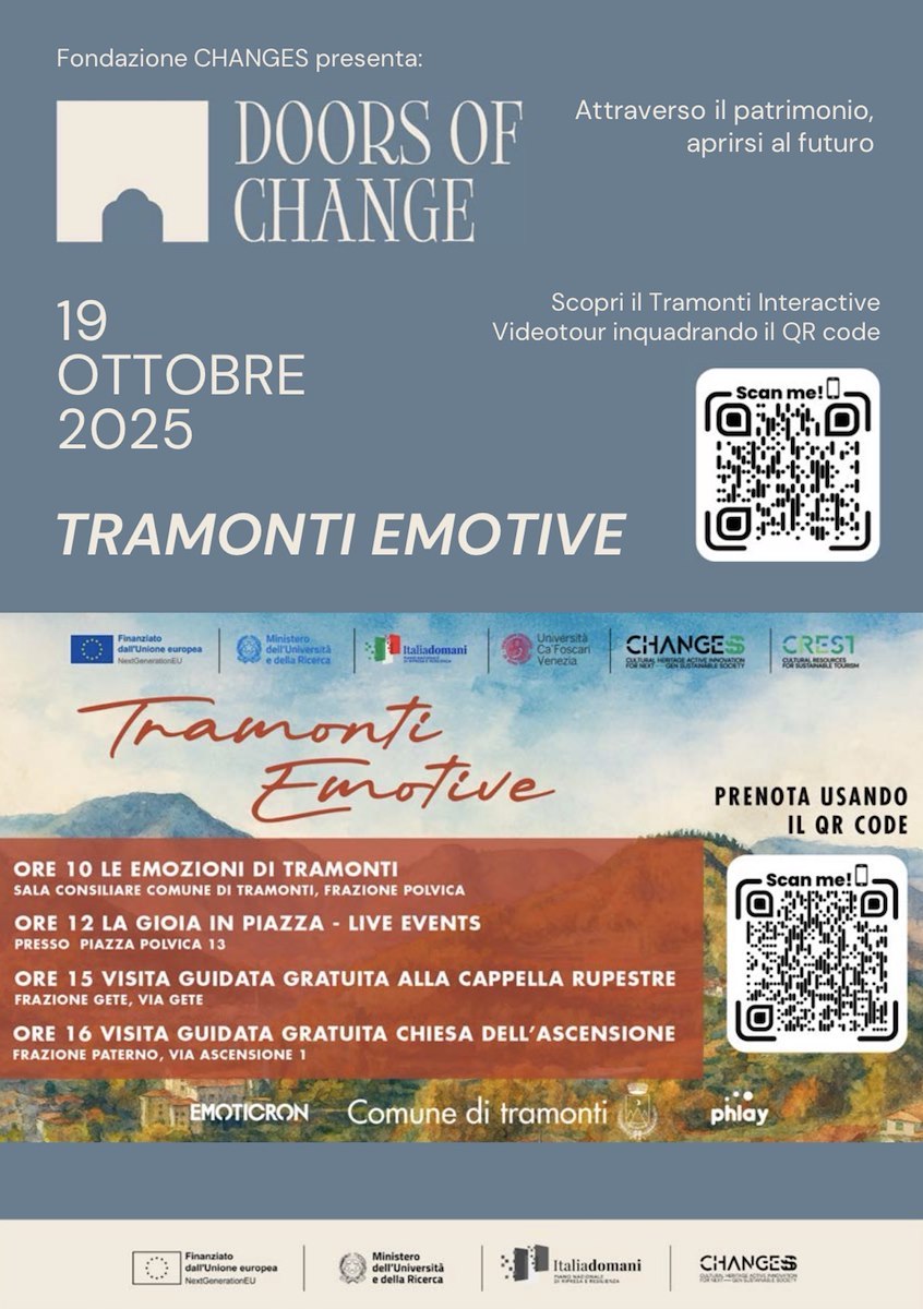 📸 Hashtag ufficiali: @fondazione_changes · @nextgen_heritage · @cafoscari · @phlay · #tramontiemotive