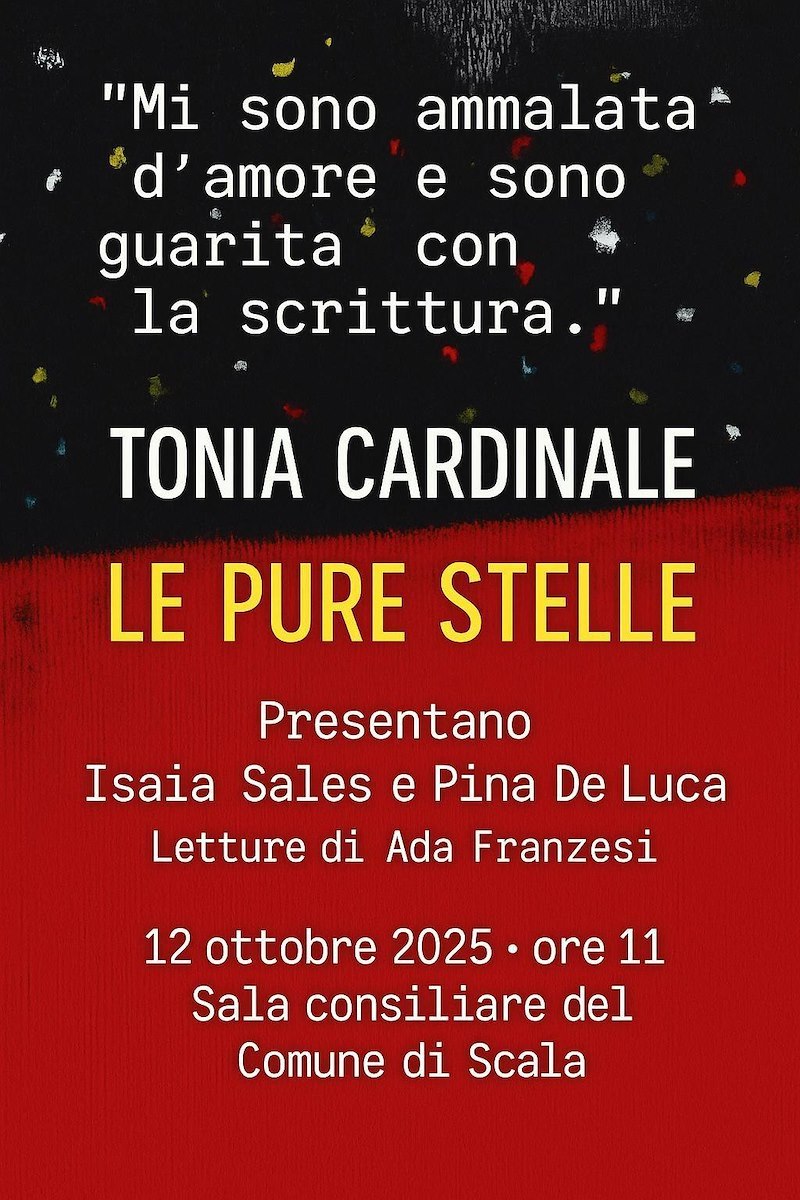 Domenica 12 ottobre alle ore 11.00, la Sala consiliare del Comune di Scala accoglierà un nuovo appuntamento culturale dedicato alla memoria e alla forza della scrittura: la presentazione del libro "Le pure stelle", opera autobiografica di Tonia Cardinale, pubblicata da IOD Edizioni.