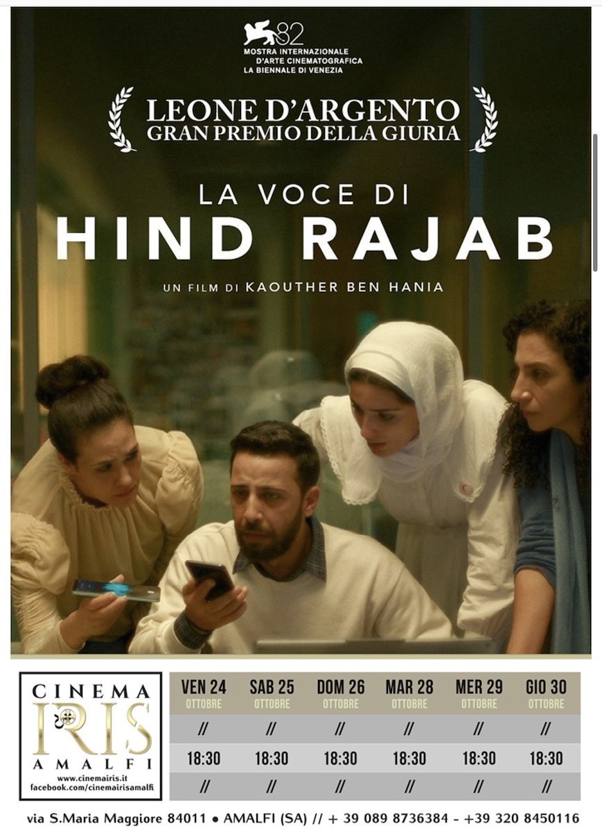 Dopo l'uscita nelle sale il 25 settembre, "La voce di Hind Rajab" arriva al cinema Iris di Amalfi, dove sarà proiettato dal 24 al 30 ottobre alle 18:30, escluso lunedì 27.