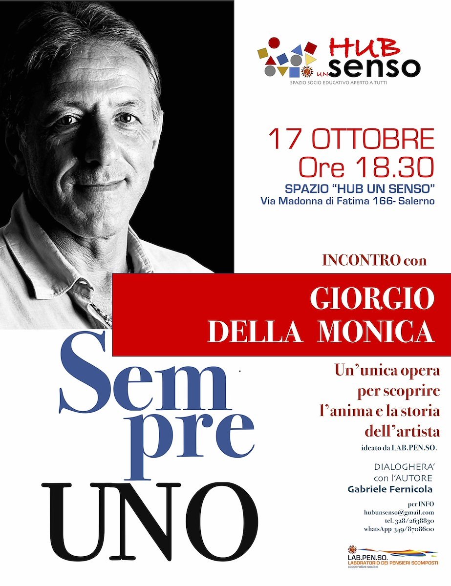 A Salerno al via l'evento artistico "SEMPRE UNO" di Giorgio Della Monica, in programma il 17 ottobre alle ore 18:30 presso l'Hub Un Senso (Via Madonna di Fatima 166).