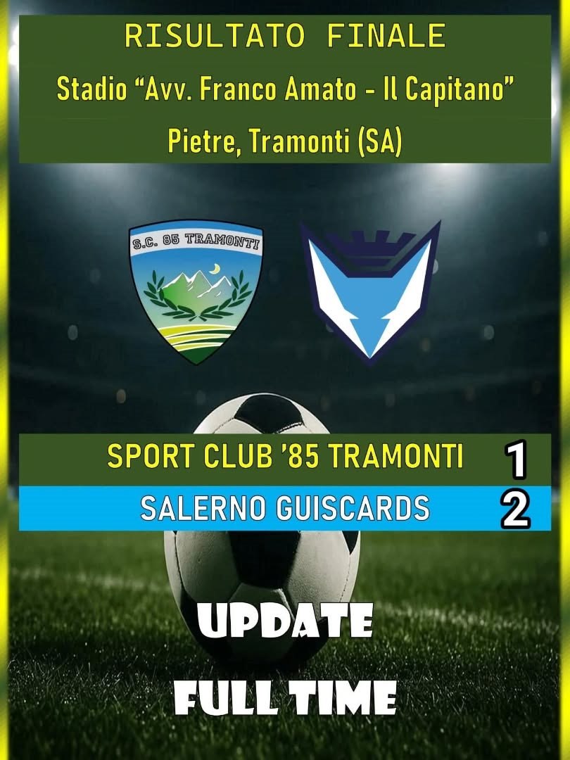 Nel girone di ritorno valido per la Coppa Italia Campania, lo Sport Club '85 Tramonti è stato sconfitto per 2-1 dai salernitani del Salerno Guiscards, al termine di un match combattuto e ricco di occasioni. L'incontro si è disputato allo Stadio "Avv. Franco Amato - Il Capitano" di Pietre di Tramonti (SA).